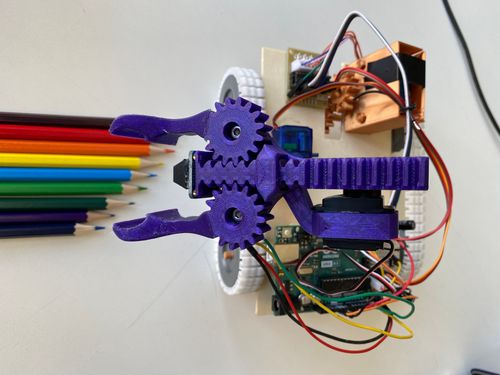 "Unbiased" Robot: The robot sorts pencils by color, revealing how "unbiased" algorithms may still reflect inherent data biases.